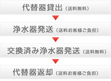 恐れ入りますが、中身交換を希望される浄水器の発送時と代替器の返送時の2回分の送料はお客様でご負担ください。