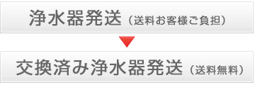 お客様の浄水器を弊社までお送りください。中身交換終了後、返送させていただきます。