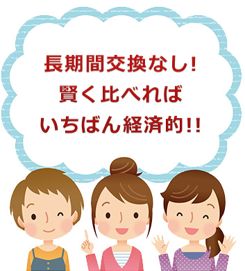 その間のランニングコストはありません。10年以上塩素を分解除去し続けます。